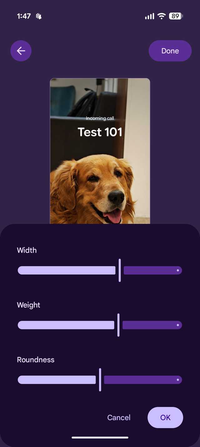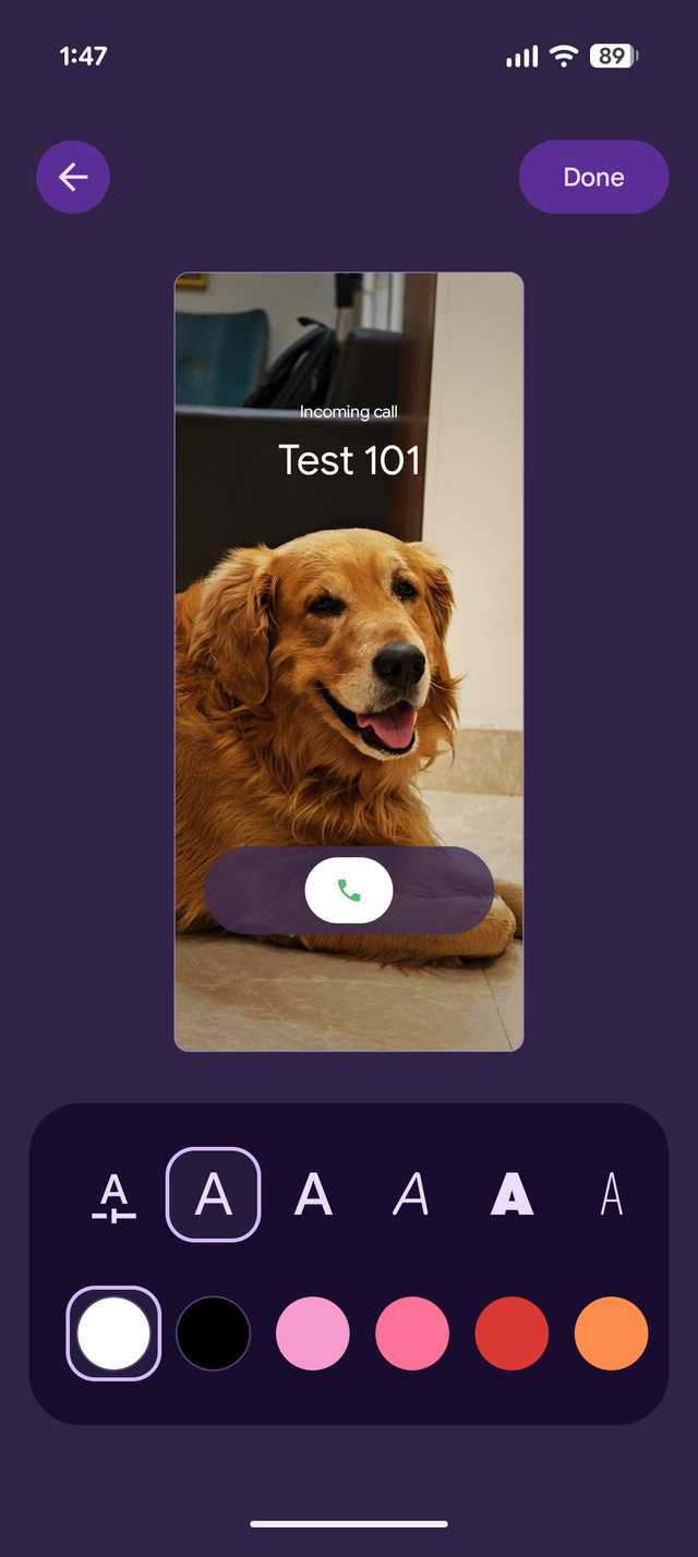 Semelhante ao iOS, você pode personalizar o cartão telefônico completo de seus contatos favoritos. Você pode alterar facilmente a imagem, o texto e até mesmo aplicar novas formas expressivas e divertidas do Material 3 em cima de suas fotos.