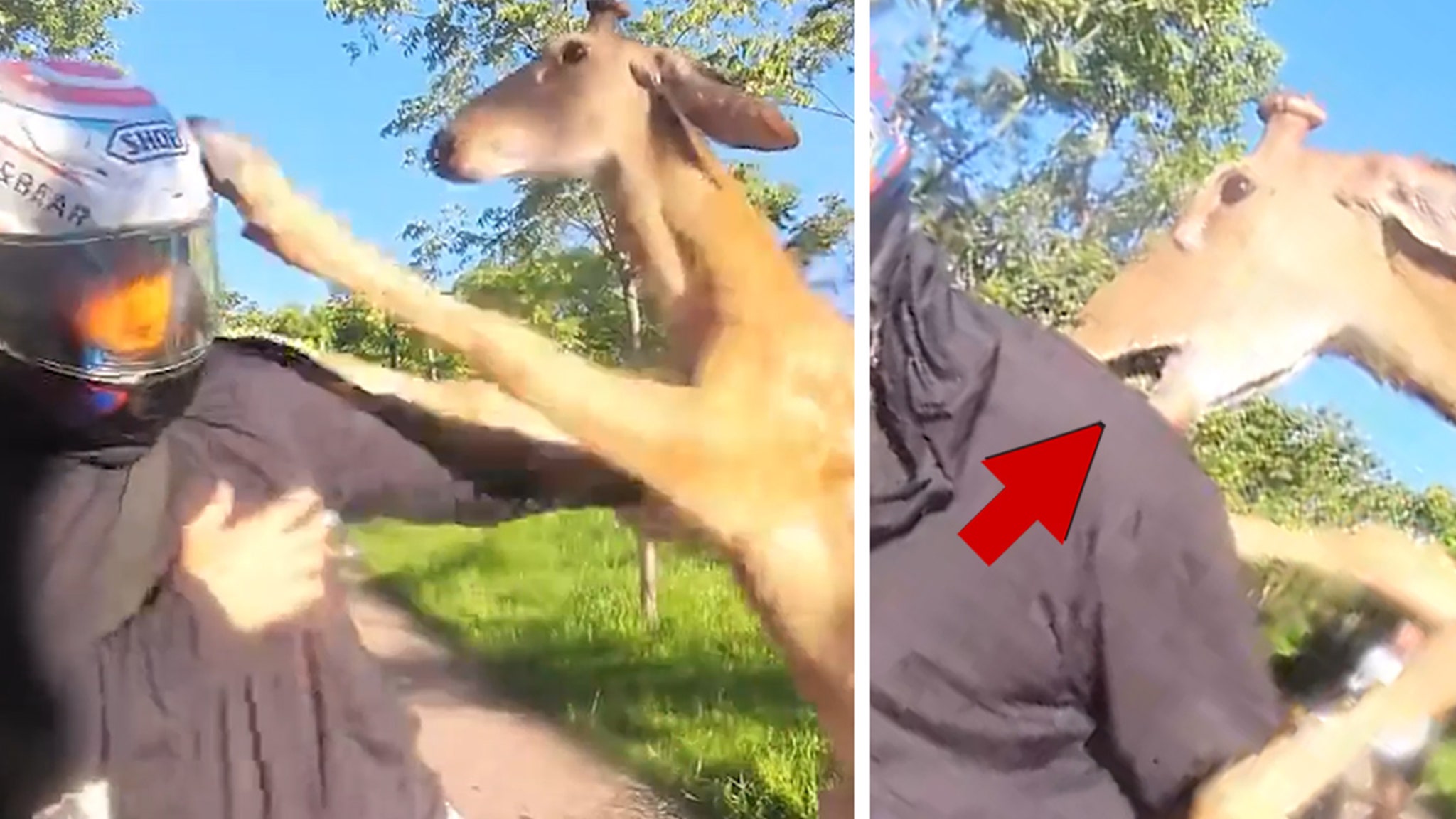 Não está claro que o piloto esteja lesionado – mas obrigado por esse capacete porque esse cervo del está jogando -o.