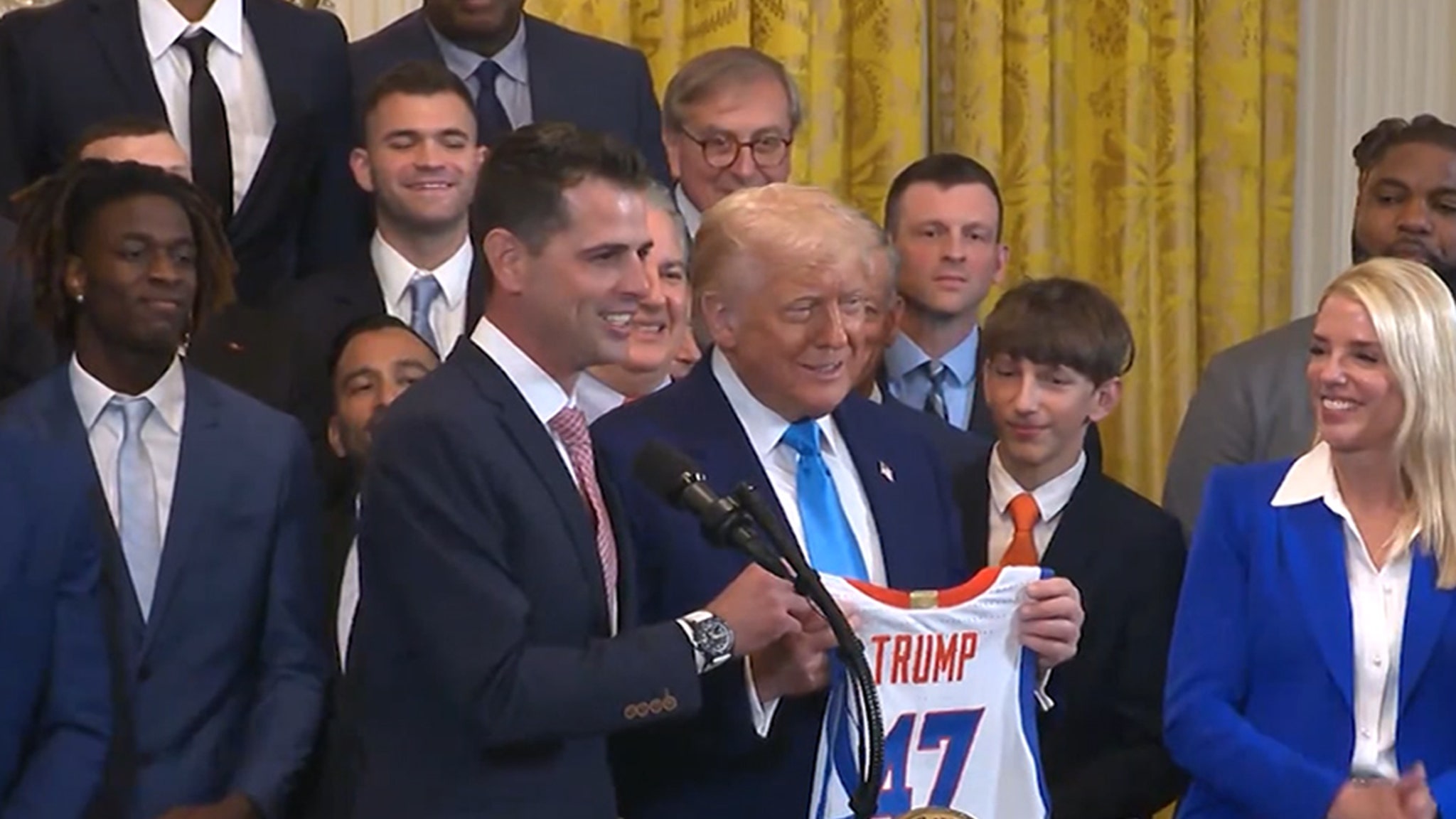 Treinador principal TDD Gold Ele também pegou o pódio … obrigado por Trump por sua hospitalidade e o presenteia com Jersey.