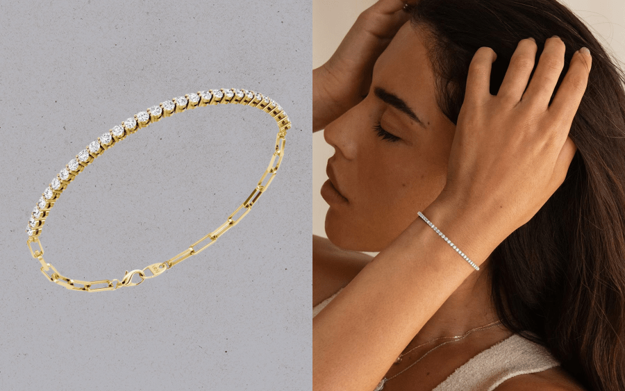 Agora, bem a tempo para o Dia dos Namorados, a marca californiana está lançando uma “pulseira de tênis Paperclip”, que oferece um toque contemporâneo à clássica pulseira de diamante.