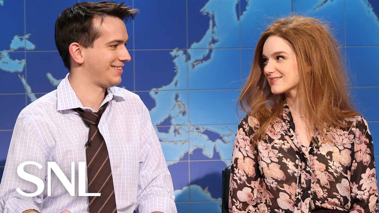 Sherman foi promovido a correspondente meteorológico do “Weekend Update” em um segmento que incluía uma aparição surpresa da estrela de “30 Rock” Jack McBrayer, mas foram Dismukes e Padilla como um casal que acabou de fazer sexo vencendo a semana com suas brincadeiras estranhas e apaixonadas, que se encaixou perfeitamente com uma discussão sobre o grande jogo da próxima semana entre o New England Patriots e o Seattle Seahawks. O casal prevê que os Patriots estarão por cima no primeiro tempo, mas em algum momento os Seahawks sairão de trás e dominarão os Patriots por um tempo. “Talvez os Patriots se cansem e peçam aos Seahawks para jogarem um pouco”, sugere Dismukes. As coisas saem dos trilhos quando ele diz que não importa o que aconteça, alguém vai ganhar um anel, o que coloca tensão no relacionamento inicial. “Eu não disse naquela noite!” ele explica para Padilla decepcionada. Os dois já se conheceram pela primeira vez no episódio de Glen Powell.