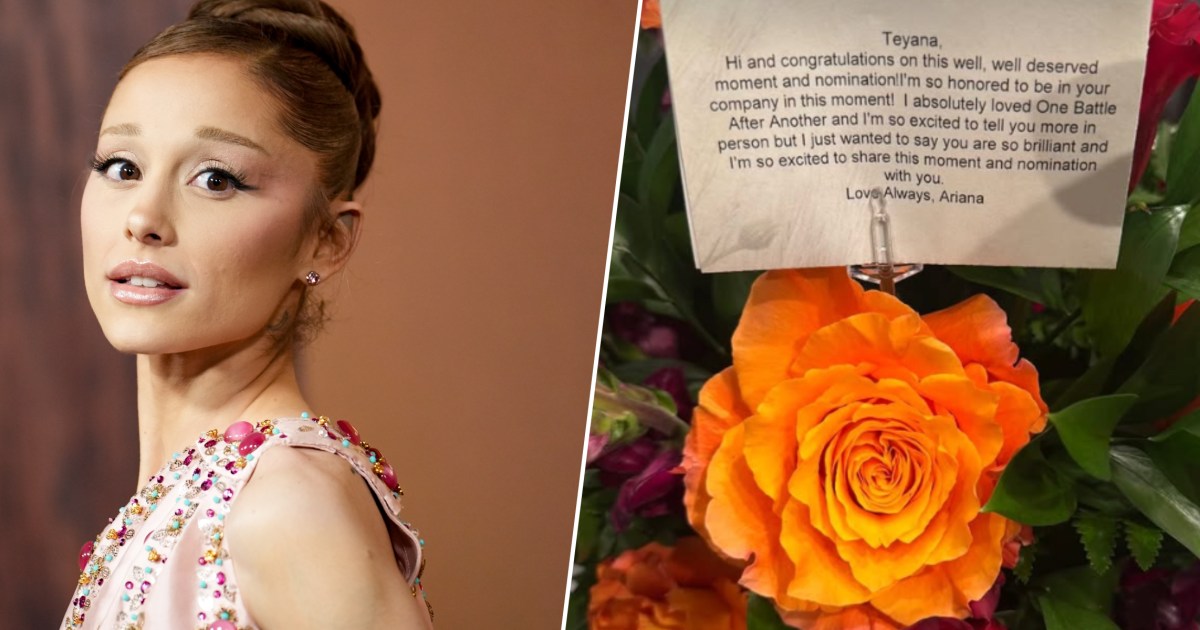 Grande, que foi indicada na categoria de melhor atriz coadjuvante por seu papel em “Wicked: For Good”, incluiu um lindo cartão para Taylor, que recebeu uma indicação na mesma categoria por seu papel em “One Battle After Another”.