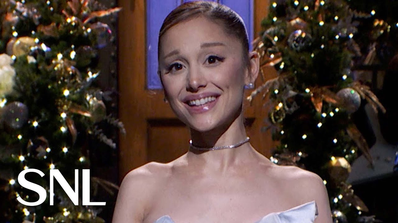O monólogo de Grande abordou brevemente a ideia de trazer de volta esquetes antigos como “Domingo” de sua última aparição antes de declarar atrevidamente: “Quando algo é perfeito, não precisa de uma sequência”. Ela falou sobre como é difícil encontrar presentes para pessoas que ela não conhece bem, como o namorado de seu primo, Steve, o que resultou em um número inteiro de músicas ao som de “All I Want for Christmas”, incluindo Yang e outros membros do elenco dando sugestões de presentes, como cupons de massagem nas costas ou uma caixa de ostras cruas. As letras não eram fáceis de entender, a menos que você tivesse as legendas habilitadas, mas Grande cantou muito a música de Mariah Carey.
