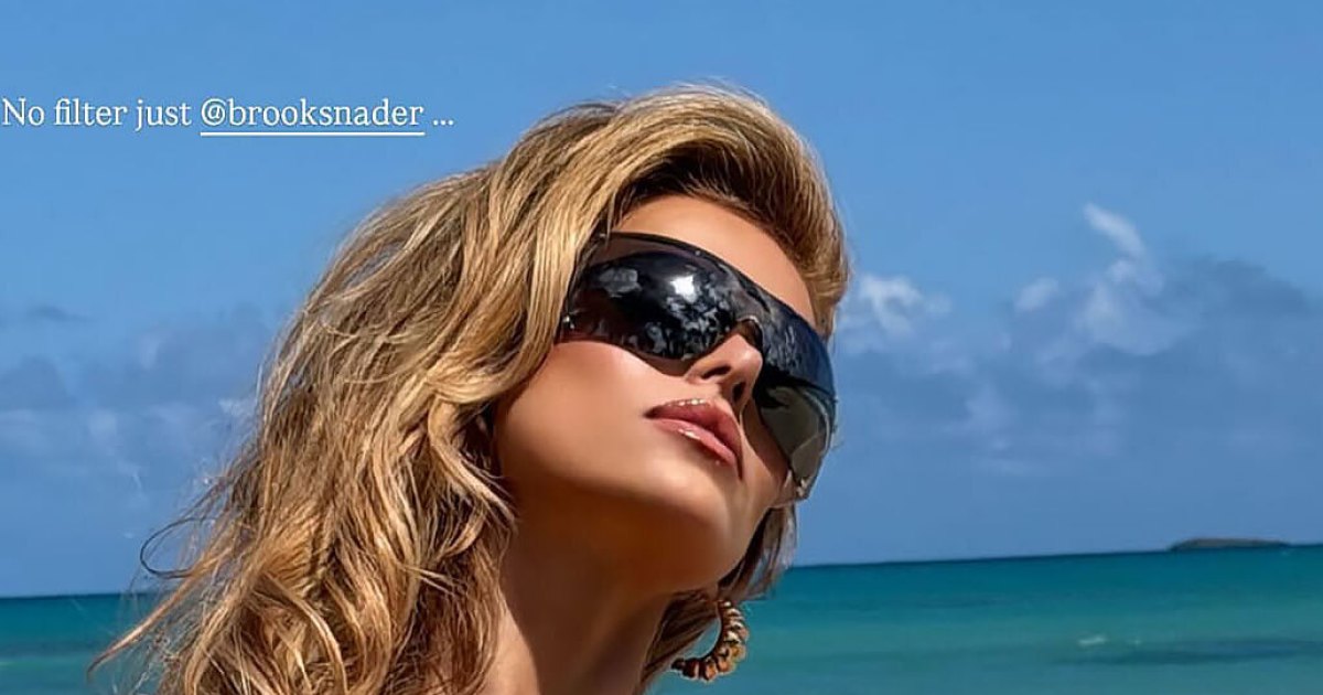 Brooks Nader arrisca um deslizamento em um biquíni e mostra a pele beijada pelo sol