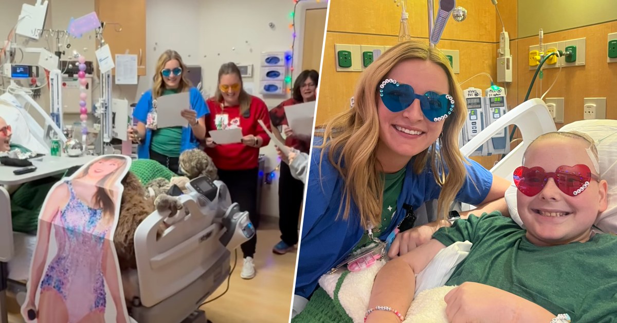 A música de Swift tocava em seu quarto durante todo o dia, e Henry chamava os membros da equipe quando suas músicas favoritas tocavam. Seus médicos também participaram, usando óculos em formato de coração e dançando. “Ele teve um dia realmente ótimo”, diz Hinson.