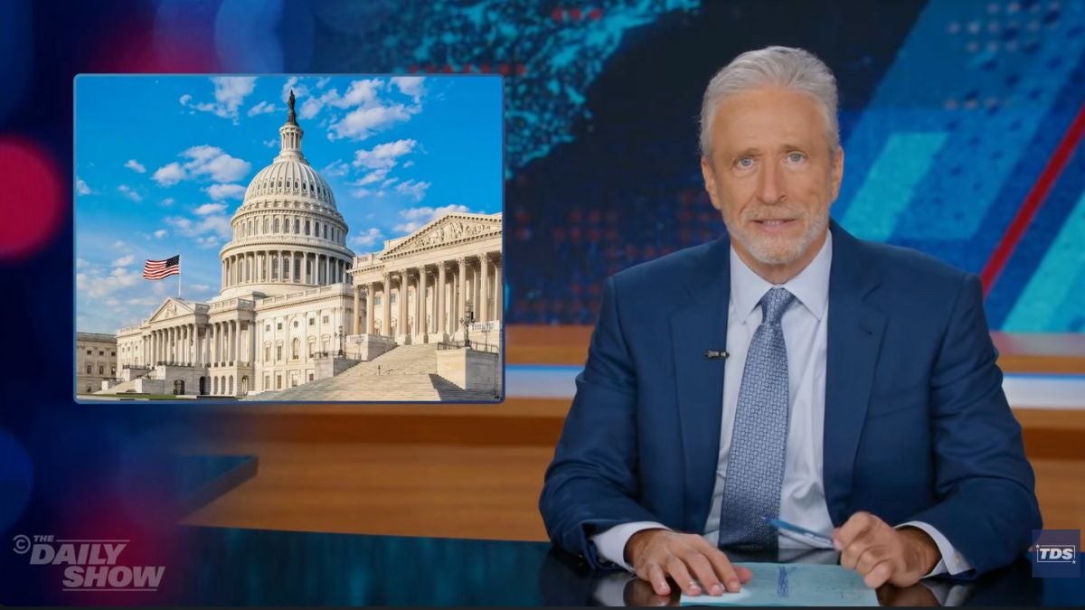 Jon Stewart invadiu o Partido Democrata depois que oito senadores romperam as fileiras e votaram pelo fim da paralisação do governo.