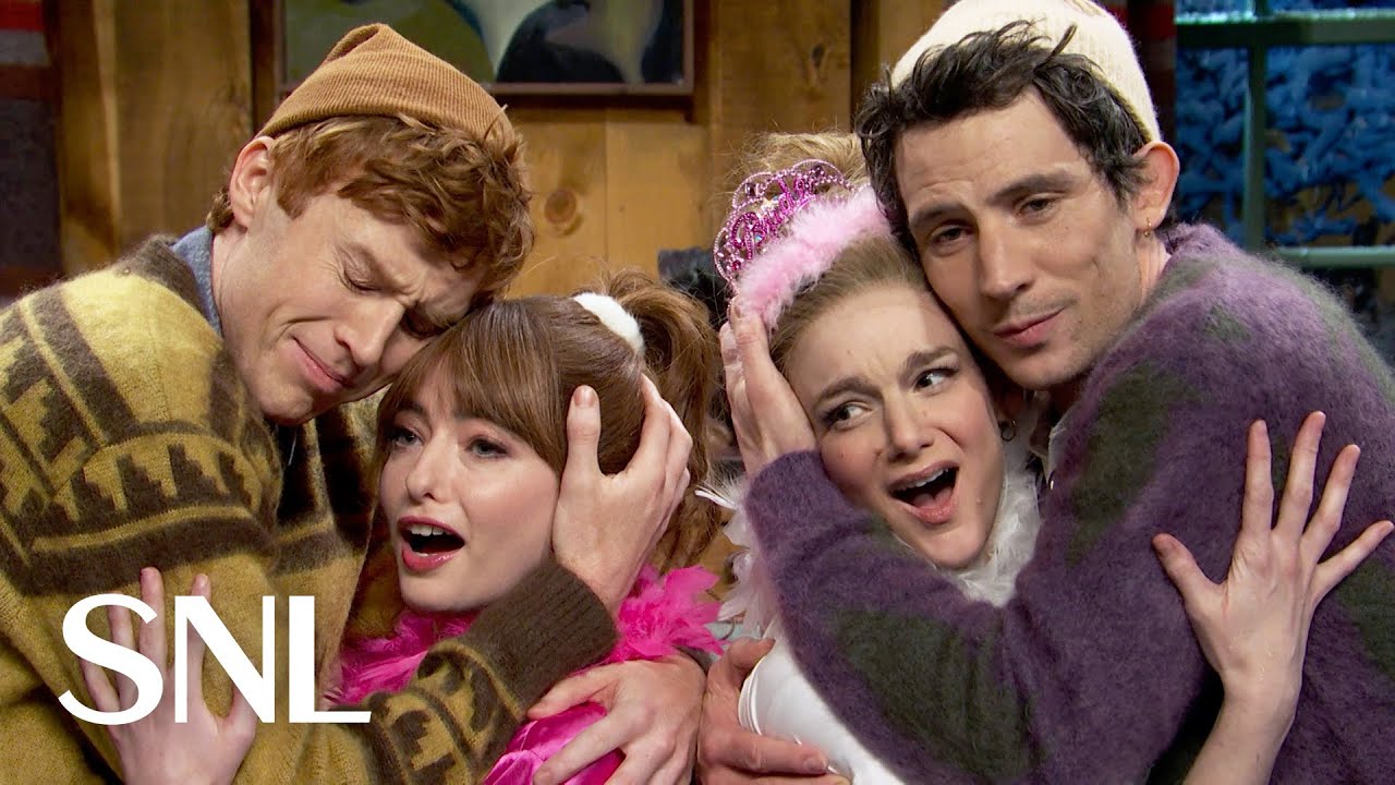 Uma despedida de solteira em uma cabana aconchegante é interrompida por dois strippers contratados, Augie e Remington (Sherman e O’Connor), que pedem consentimento antes de entrar e logo tiram os cardigãs para revelar outra camada do cardigã. Os homens dançam uma versão emo de “Pony” antes de revelar que um deles tem uma tatuagem de Zohran (Mamdani) na barriga. Eles fazem lap dances, mas um deles fica superestimulado e chora. “Eu estava pensando na Suprema Corte”, ele geme. Não é a ideia de esboço mais original, mas os detalhes específicos dos personagens e as reações apaixonadas de Padilla quando a despedida de solteira salvou o esboço de ultrapassar as boas-vindas.