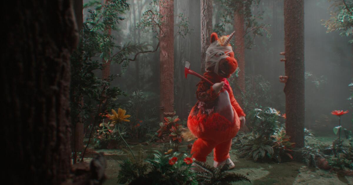 Meu Sundance nunca foi glamoroso. Raramente tenho tempo de ir a uma festa e, quando vou, fico parado em um tapete molhado, de meias, na esperança de comer uma bola de chili. A única exceção foi o ano em que participei de um júri de curta-metragem que incluía o ator Keegan-Michael Key, com quem encontrei na manhã de sexta-feira dando entrevistas para o colorido e peculiar filme da meia-noite de Casper Kelly, “Buddy”, que é como um episódio matador de farra muito especial de “Barney”. Key interpreta um unicórnio laranja gigante que apresenta um programa de TV infantil e força as crianças a abraçá-lo ou morrer. É um pouco fraco comparado com outros projetos incrivelmente bizarros de Kelly (“Too Many Cooks”, “Adult Swim Yule Log”) que sempre acrescentam outra reviravolta desestabilizadora. Mas você sente níveis subterrâneos de estranheza que sugerem que ele já tem ideias para uma sequência.