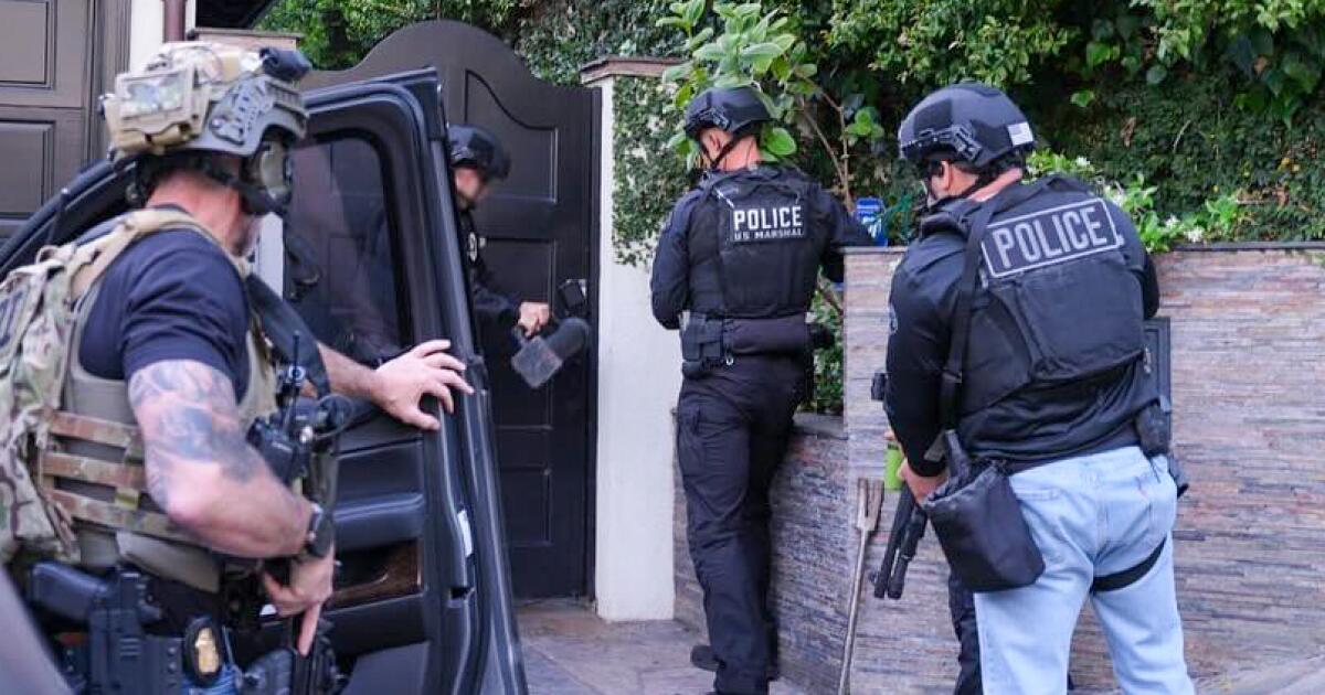 Imagens, postadas nas redes sociais, mostram membros das divisões de Roubos, Homicídios e Quadrilhas e Narcóticos se aproximando de uma casa em uma rua arborizada usando equipamento tático e carregando rifles. A estrada fica perto da Sunset Boulevard, em uma rua cheia de celebridades onde pessoas como Kendall Jenner e Emily Blunt viveram e onde Jimmy Kimmel uma vez se descreveu como o capitão da vigilância do bairro.