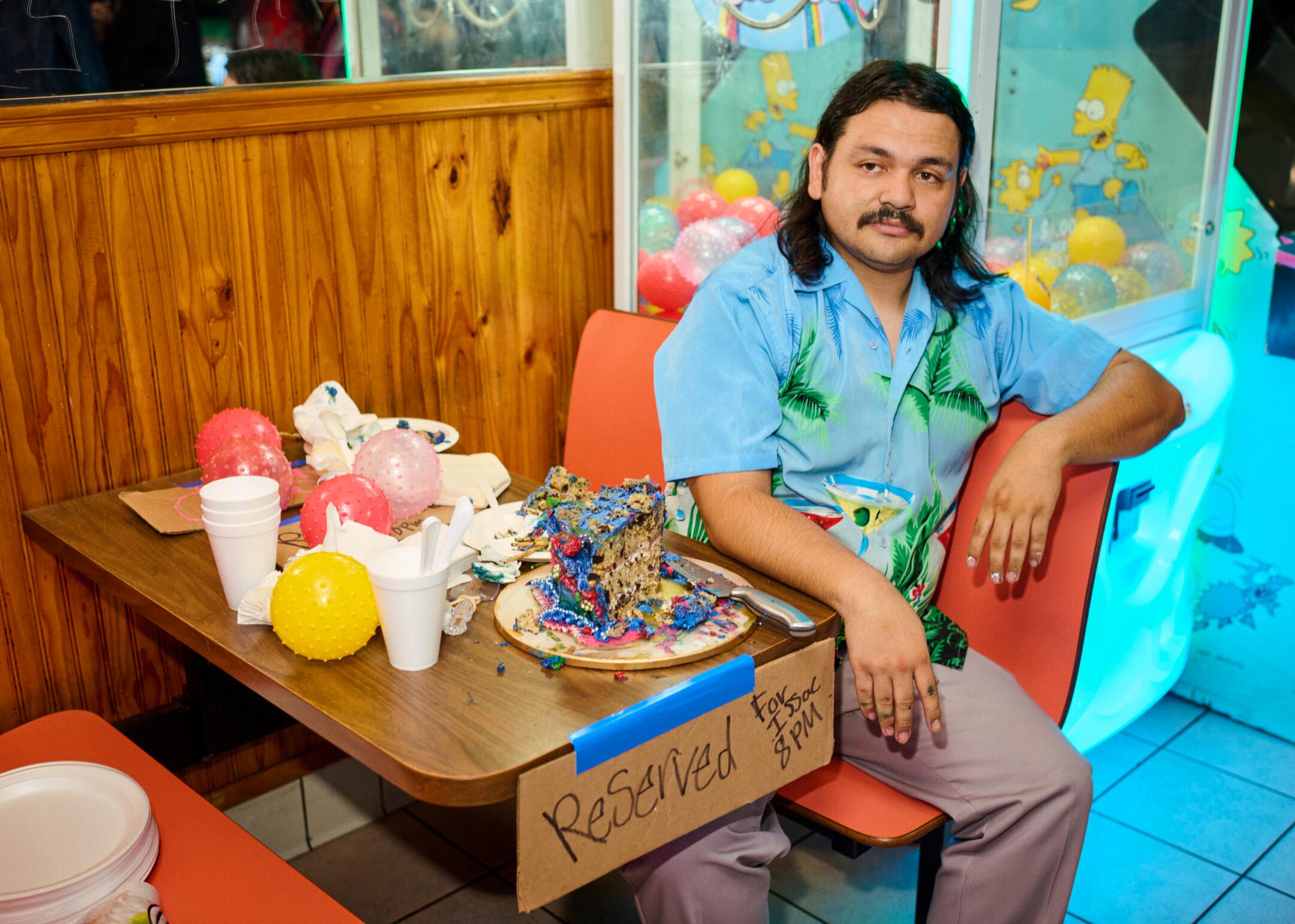 Em uma noite de quarta-feira de agosto, Celeste Perkins entrou direto no El Atacor # 1 em Cypress Park segurando um bolo iminente de três camadas, coberto com creme de manteiga americano e retocado em tons saturados de vermelho, ecológico e azul. A tubulação espessa e extrema produziu uma estrutura transcendente nas áreas superficiais do bolo. Doces pérolas de metal brilhavam sob as luzes fluorescentes. Os tons e a vitalidade da guloseima foram inspirados nas cores vivas e sonhadoras do músico angeleno Isaac Psalm Escoto, também conhecido como Sickid, para quem o bolo foi feito.