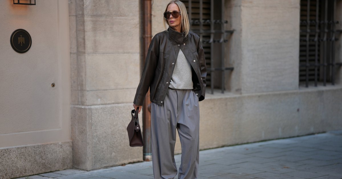 10. Momento Minimalista: Sussurre ‘luxo silencioso’ ao estilizar esta jaqueta refinada com zíper completo que parece algo escondido no armário de uma mãe rica.