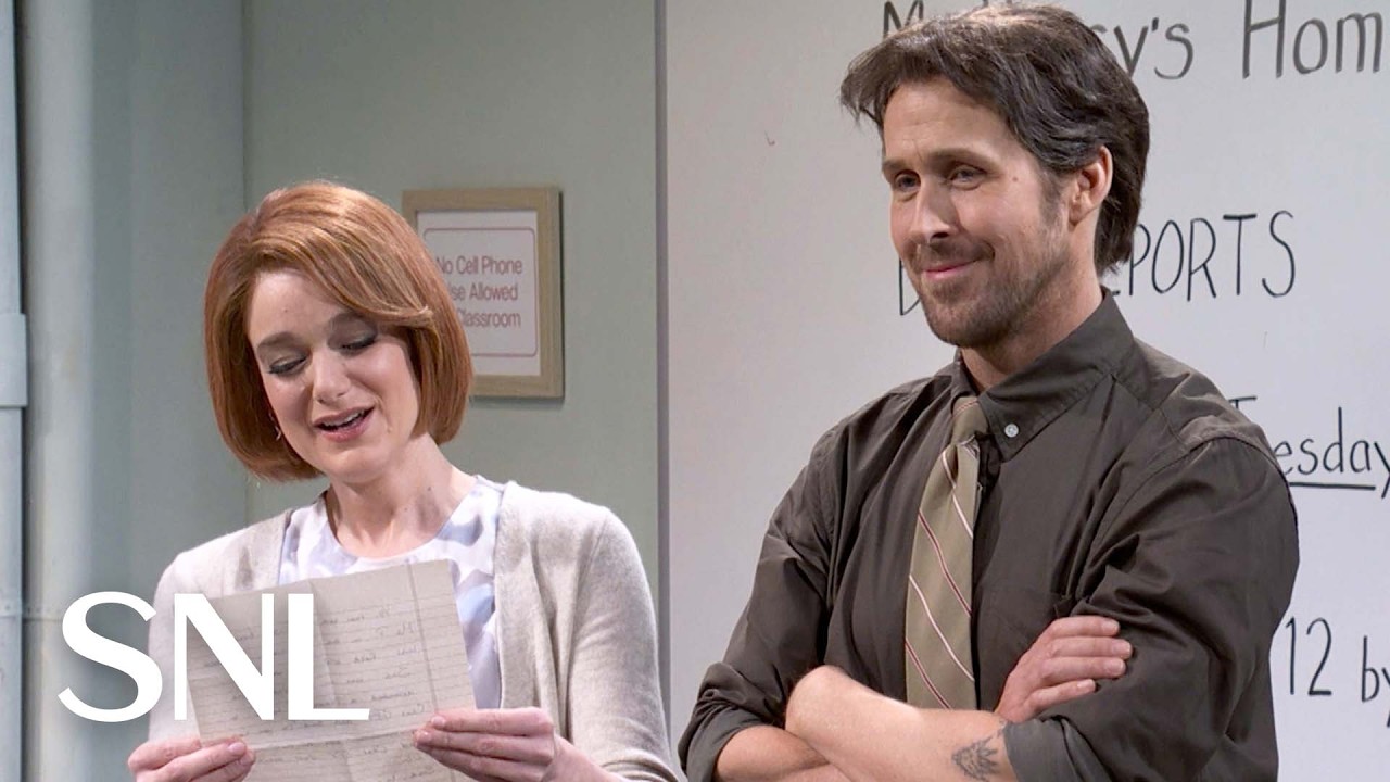 Talvez isso tenha sido mais engraçado para quem está no palco do que para quem assiste em casa, mas a audácia de um esboço em que o material é trocado antes do horário de exibição (como somos informados em um aviso na tela) para membros do elenco e o anfitrião desavisados, deu vida ao que de outra forma teria sido um esboço bastante rotineiro sobre um professor (Padilla) e um diretor (Gosling) tentando disciplinar alunos indisciplinados. Padilla quase nunca quebra os esboços; ela é uma artista sólida, mas sem qualquer conhecimento prévio das piadas nas notas que teve que ler em voz alta, ela simplesmente desmoronou. Gosling nunca teve chance. As piadas nas notas não são todas boas, mas são suficientes para causar o efeito pretendido nos dois intérpretes. A risada se torna contagiante.