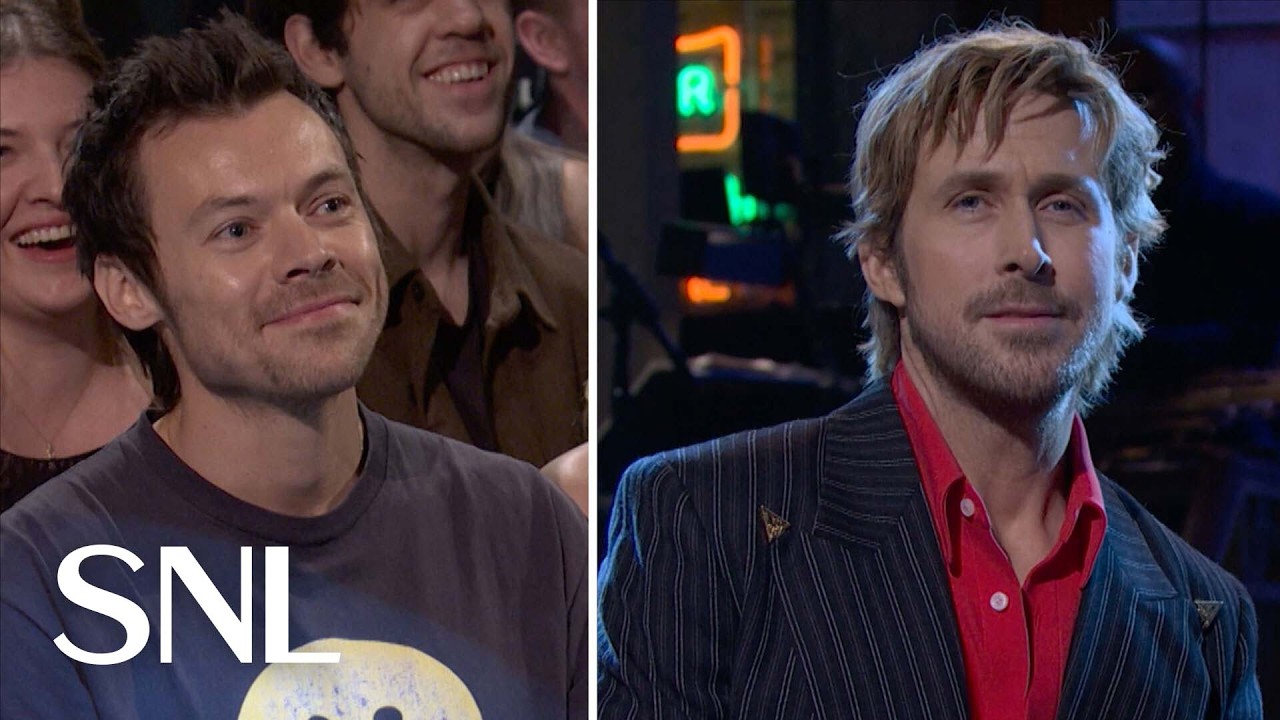 Em seu monólogo, Gosling começou a cantar uma música sobre a Terra (com um modelo planetário pendurado como visual) antes de se distrair com a estrela pop Harry Styles na primeira fila. Styles, apresentador do “SNL” da próxima semana, disse que só queria ter uma ideia. Em pouco tempo, membros do elenco apaixonados, incluindo Sarah Sherman e um cinegrafista vestindo uma camisa I (Heart) Harry que continuava focando em Styles, provaram ser demais para Gosling, que cancelou um grande número de música e dança apresentando a maior parte do elenco em trajes espaciais prateados. Gosling começou a cantar “Sign of the Times”, que aparece em seu filme “Project Hail Mary”, antes de perceber que era uma música de Harry Styles. “Eu sou apenas Ken!” Gosling se debateu. Os membros do elenco o consolaram, incluindo um beijo na bochecha de Mikey Day que fez Gosling ter um ataque de riso espontâneo. Gosling agradeceu a Kenan Thompson por ter vindo apoiá-lo. “Viemos apenas para ver Harry melhor”, respondeu Thompson.