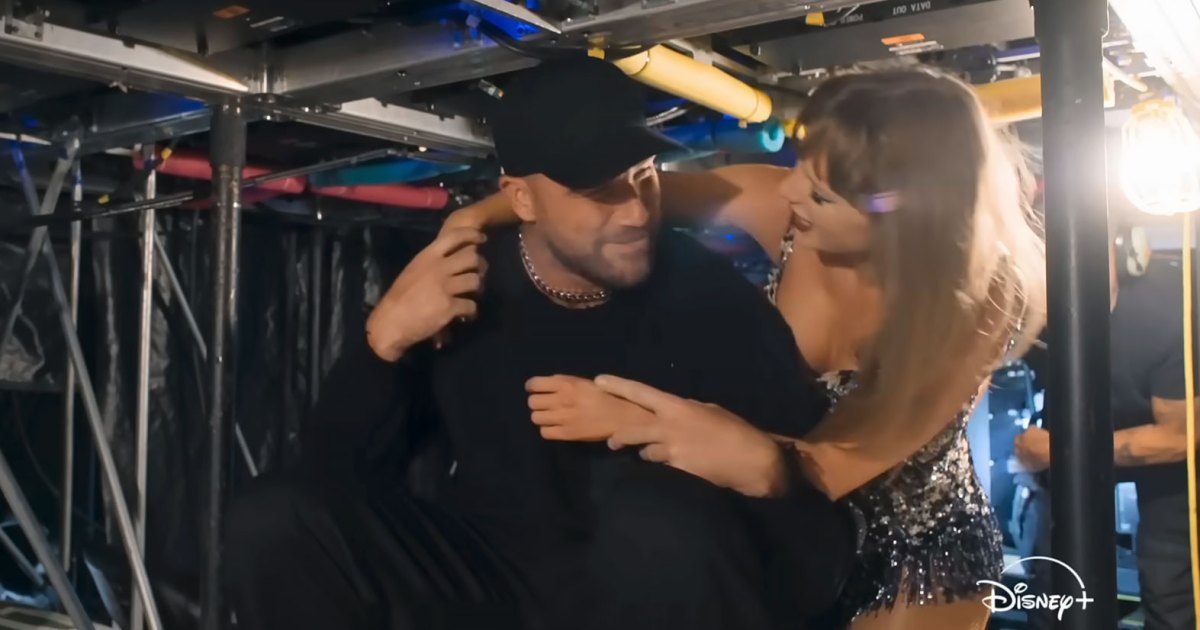 Durante um telefonema com Taylor em um clipe, Kelce disse a ela: “Você tem companheiros de equipe, eu tenho companheiros de equipe”.