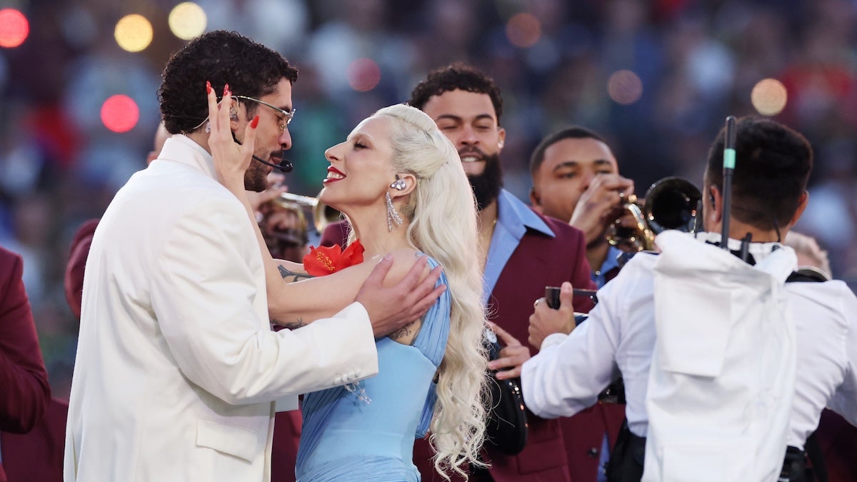 Seu set incluía músicas de seu álbum “Debí Tirar Más Fotos”, pelo qual ganhou vários prêmios Grammy no fim de semana passado. O Apple Music Super Bowl LX Halftime Show do artista contou com participações especiais de Lady Gaga e Ricky Martin.