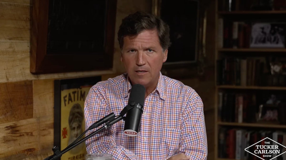 No episódio de quinta-feira do “The Tucker Carlson Show”, o apresentador ponderou sobre a possibilidade depois que o presidente postou uma imagem sua gerada por IA no fim de semana, vestido com vestes semelhantes às de Cristo, curando os doentes com uma luz brilhante emitida por suas mãos. Tucker achava que esse tipo de zombaria estava de acordo com os ensinamentos bíblicos do Anticristo.