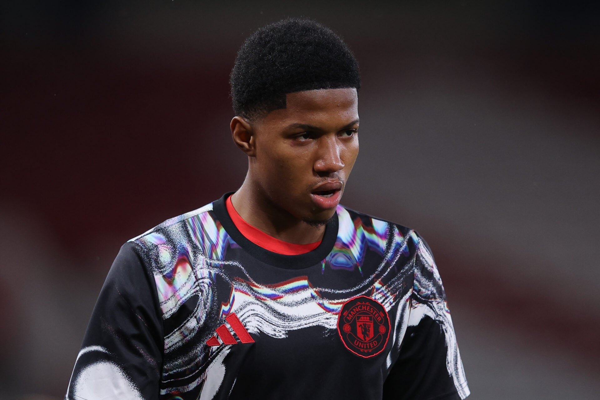 Chido Obi com as mãos na cabeça após falha do Manchester United.Foto de James Gill – Danehouse / Getty Images