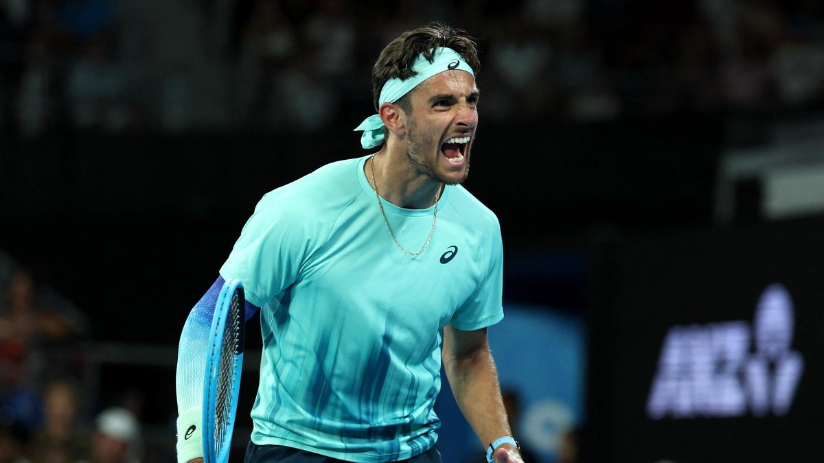 Rugido da vitória: o italiano Lorenzo Musetti venceu Tomas Machac por 5-7, 6-4, 6-2, 5-7, 6-2 para entrar nas pré-quartas de final. | Crédito da foto: REUTERS