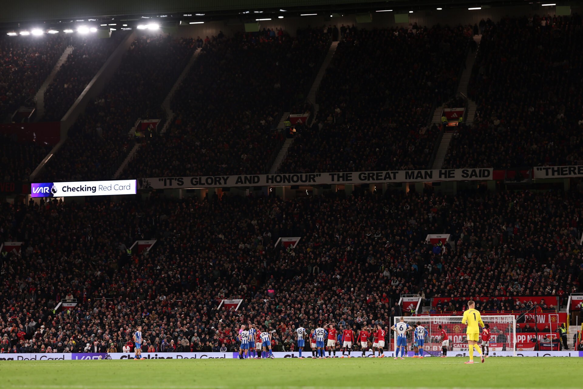 VAR verifica um cartão vermelho durante a partida da Premier League entre Manchester United e Brighton and Hove Albion em Old Trafford em 2025 em Manchester, Inglaterra.Foto de Shaun Brooks – CameraSport usando Getty Images