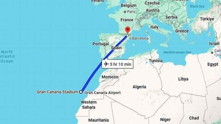 As Ilhas Canárias estão muito mais próximas de Marraquexe do que de Madrid. Google Mapas