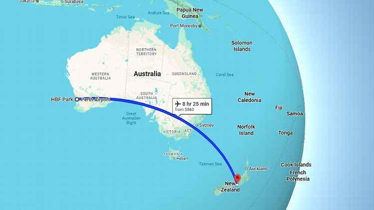 A cidade de Perth está situada na costa oeste da massa terrestre da Austrália e Wellington fica na ilha norte da Nova Zelândia, o que indica que o grande salame entre as duas arenas fica a enormes 6.566 milhas sobre terra e mar.