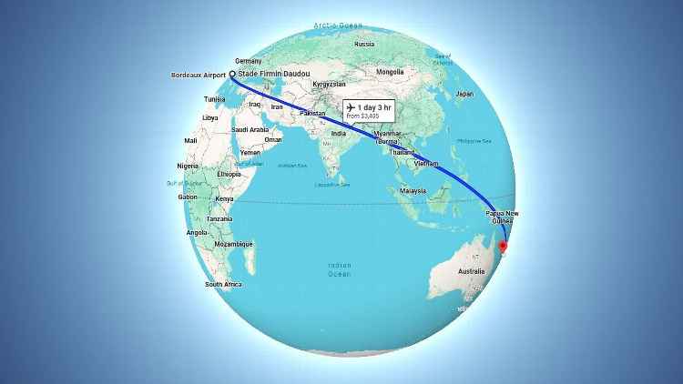 A viagem de Trelissac foi praticamente a meio caminho do mundo. Google Mapas