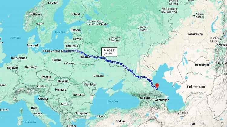 A introdução do FC Baltika Kaliningrad na organização aumentou drasticamente o tempo de viagem de cada grupo. Google Mapas