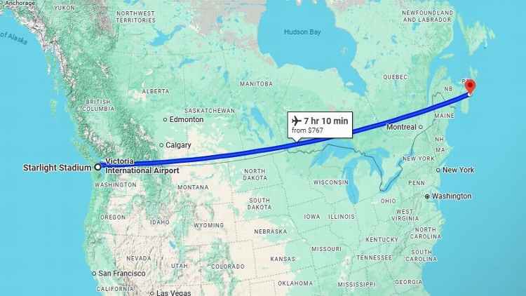 O recorde de 5.574 milhas do Canadá continua em risco de ser danificado pela MLS no período seguinte. Google Mapas