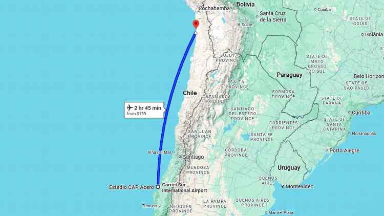 Huachipato e Deportes Iquique podem ter alguns dos melhores sinistros de seguros quando se trata de linhas de latitude atravessadas. Google Mapas