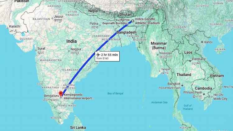 No entanto, a conexão entre o NorthEast United FC (sem recompensas por presumir onde eles estão baseados) e o Bengaluru FC ainda é um grande salame bastante difícil de 2.582 milhas para qualquer tipo de torcedor que pretenda fazer a viagem.