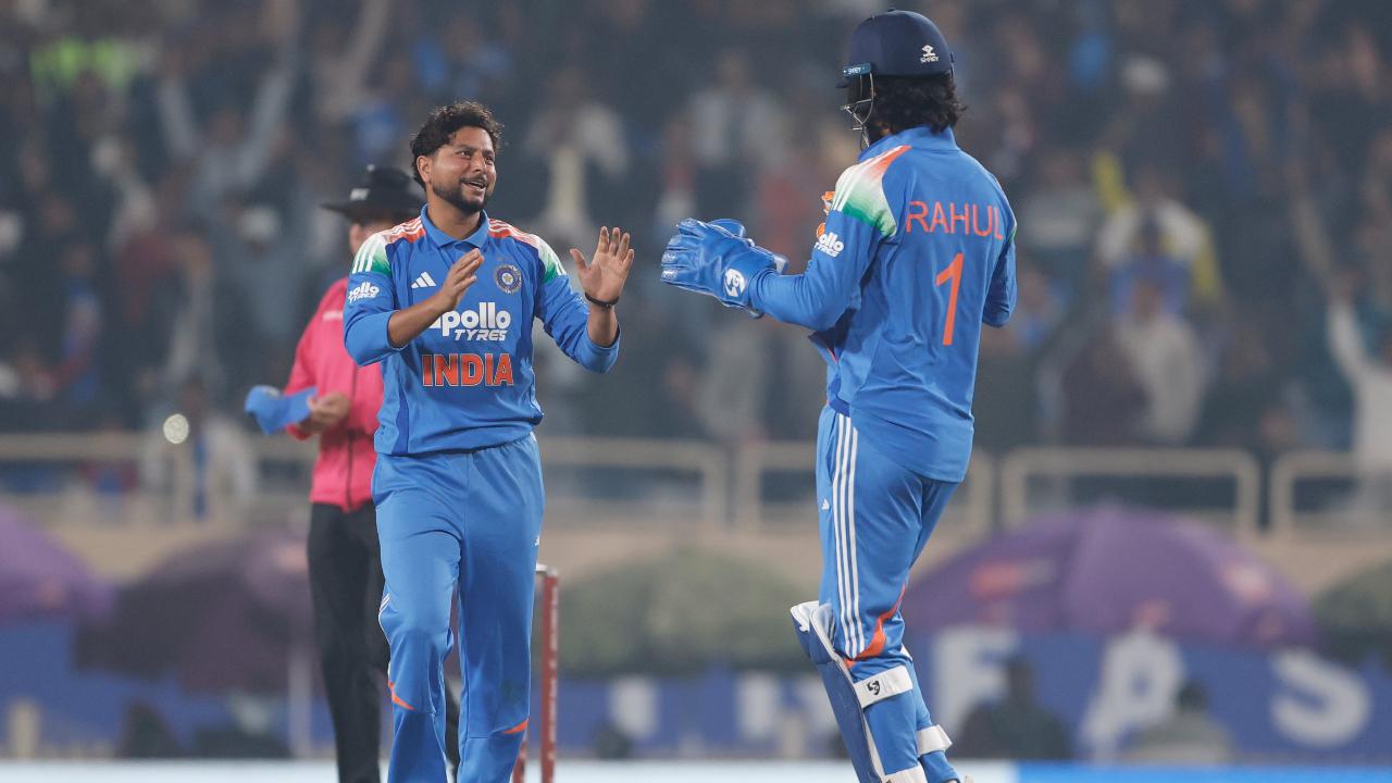 O spinner estrela dos anfitriões, Kuldeep Yadav, conquistou quatro postigos ao sofrer 68 corridas em 10 saldos.