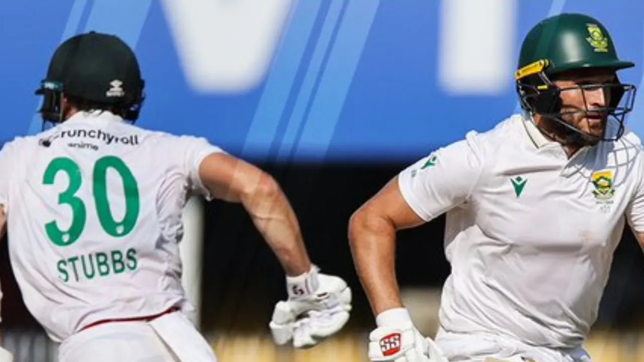 Anteriormente, a dupla de abertura da África do Sul, Aiden Markram e Ryan Rickelton registraram pontuações de 35 e 29 corridas, respectivamente. Enfrentando 64 bolas, Rickelton partiu após quebrar quatro limites, enquanto Markram registrou três limites em sua rebatida de 84 bolas.