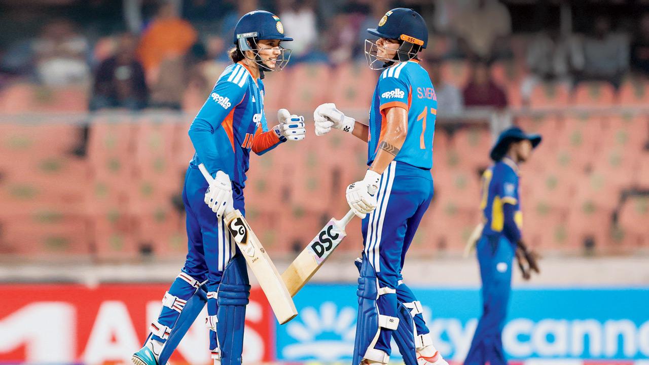 Anteriormente, Mandhana e Shafali deram uma aula magistral de rebatidas para martelar os arremessadores do Sri Lanka em todo o Greenfield International Stadium após serem colocados no bastão. Perto do final, Richa Ghosh acertou uma bola 40 de 16 que não foi eliminada e o capitão Harmanpreet Kaur acertou 16 bolas de 9 que não foi eliminado, enquanto a Índia atingia um total enorme.