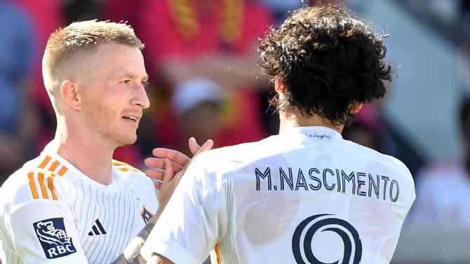 Marco Reus faz um magnífico passe de calcanhar depois de Matheus Niscimento para conseguir o gol, puxando o nível da galáxia para dois.