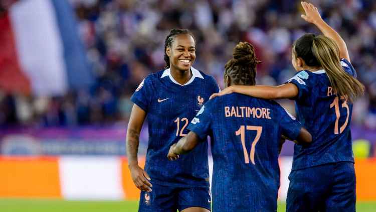 A partir daí, a França dominou e a Inglaterra começou a cometer uma série de erros. Katoto fez a mão em casa um cruzamento de Delphine Cascarino após 36 minutos, enquanto Baltimore explodiu o caos defensivo nas fileiras em inglês para dobrar sua vantagem três minutos depois.