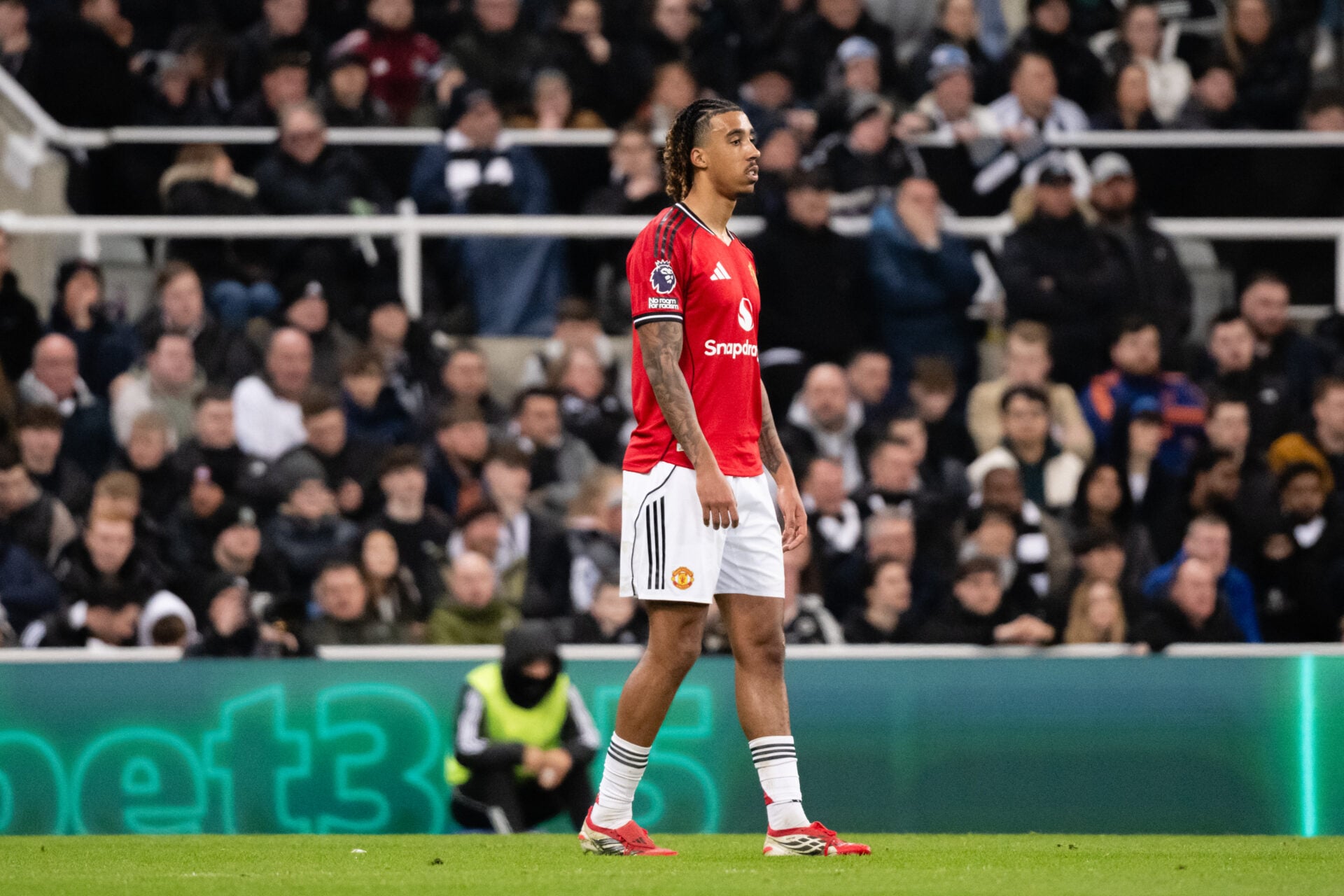 Aos 75 minutos, frente ao Newcastle, Leny Yoro teve a oportunidade de marcar o seu primeiro golo na Premier League ao acertar um cruzamento certeiro de Bruno Fernandes.