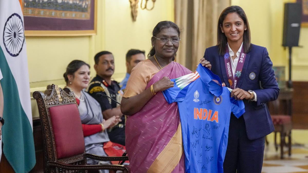 O presidente Draupadi Murmu elogiou a seleção indiana de críquete feminina vencedora da Copa do Mundo por seu desempenho exemplar durante uma reunião com as jogadoras no Rashtrapati Bhavan na quinta-feira. Ela também foi presenteada com uma camisa autografada por todo o elenco.