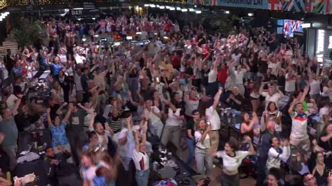 Os fãs da Inglaterra explodiram quando Chloe Kelly marcou para colocar na Inglaterra por 2 a 1 contra a Itália nas semifinais do euro 2025.