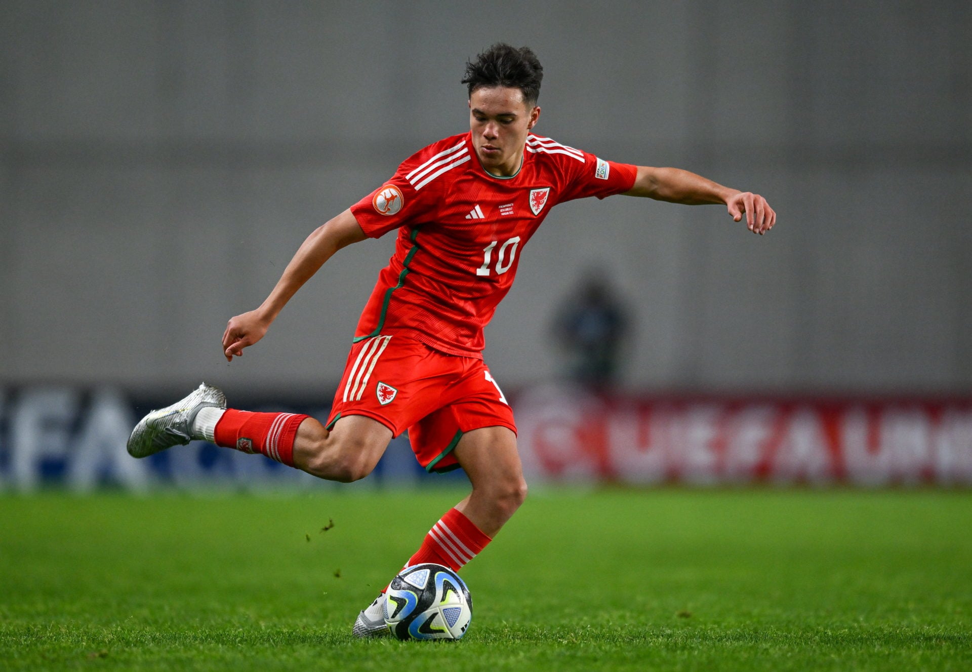 Ayden Heaven correndo com o uniforme vermelho do Manchester United.Foto de Mark Cosgrove/News Images/NurPhoto via Getty Images