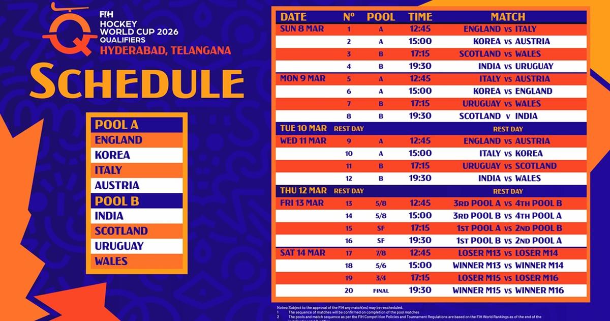 Aqui está a programação da etapa final do torneio em Hyderabad: