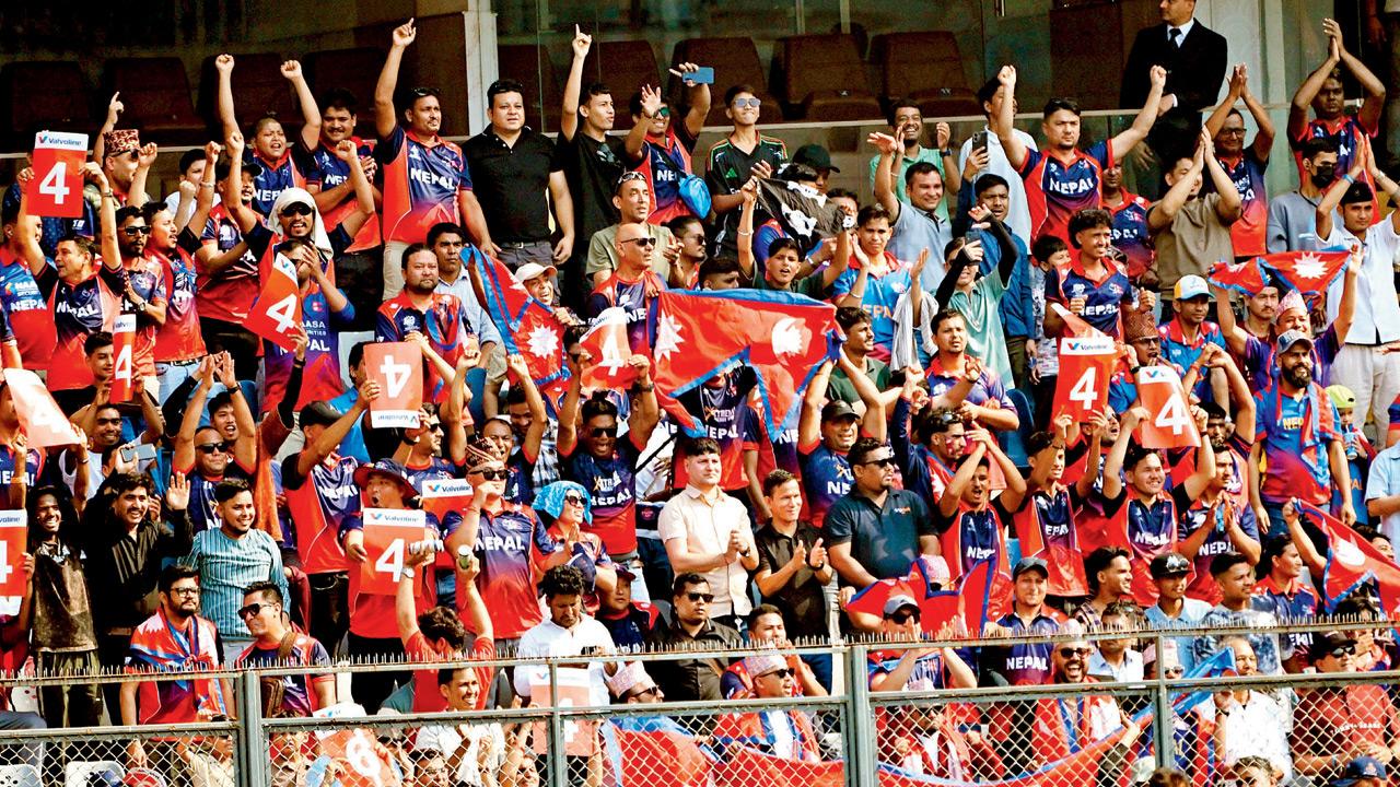 A torcida do time do Nepal tomou conta do Estádio Wankhede mais uma vez nesta quinta-feira, durante a partida contra a Itália. Cerca de 13.000 espectadores lotaram o local de Mumbai e quase todos eram torcedores do Nepal. Na partida anterior do Nepal contra a Inglaterra, no domingo passado, houve números ainda maiores, cerca de 17 mil ou mais.