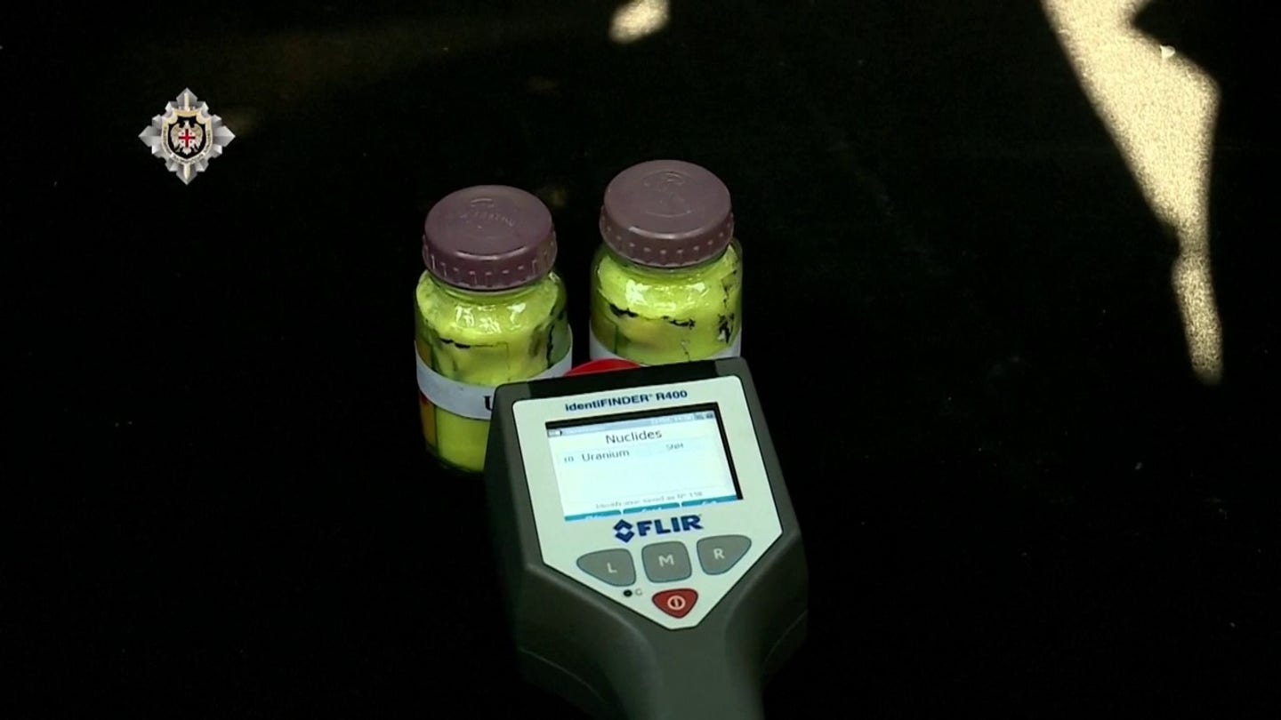 Imagens de vídeo divulgadas pela agência mostram agentes de segurança na capital georgiana apreendendo garrafas contendo o que foi identificado como urânio e prendendo vários indivíduos no local.