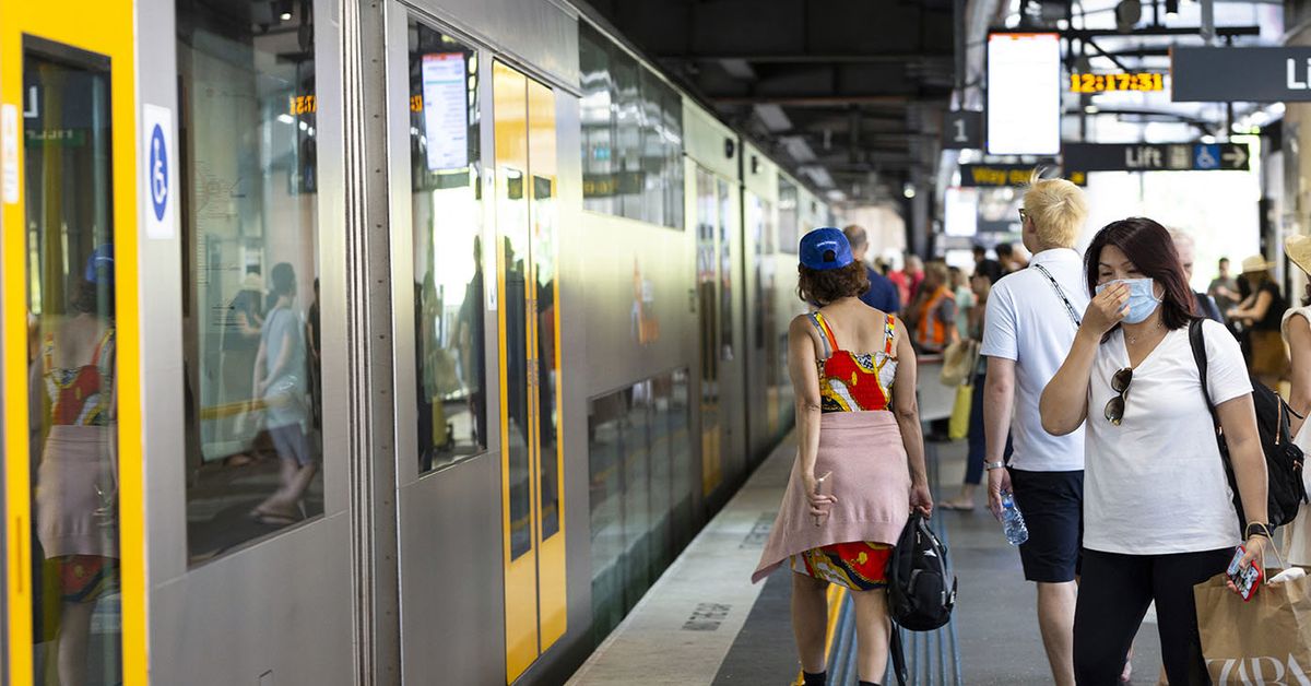 Sydney, Austrália - 01 de março de 2020: Circular Quay, jovem asiática usando máscara facial e outras pessoas esperando para embarcar no trem na estação ferroviária Circular QuayA Austrália nem sequer estabeleceu um CDC provisório até quase quatro anos após o início da pandemia de COVID-19. (Getty)