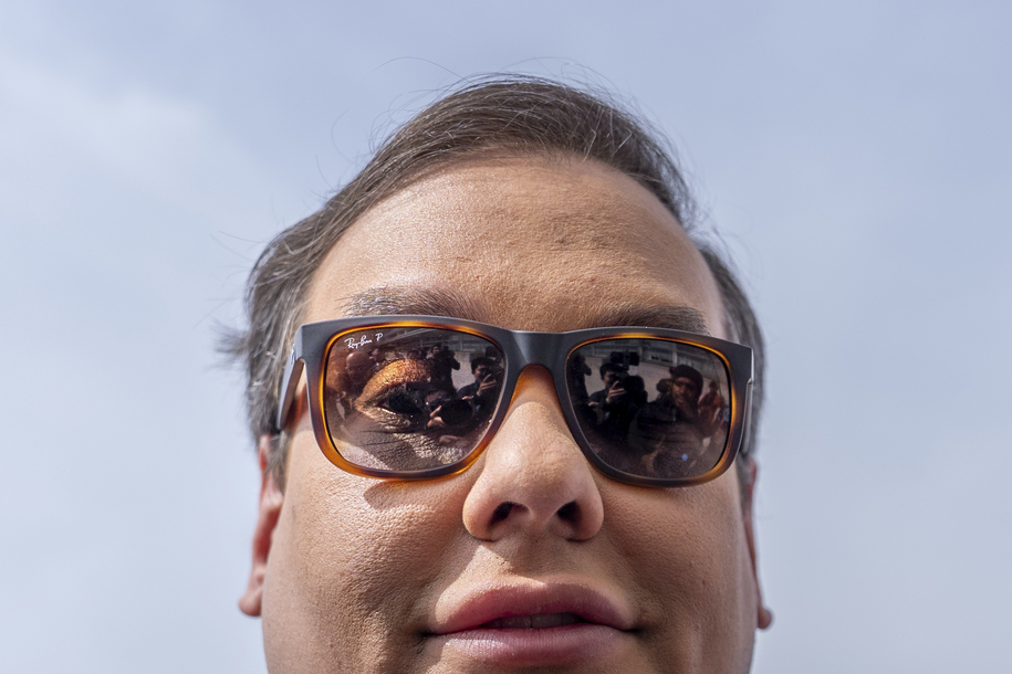 O ex-deputado George Santos chega ao tribunal federal para ser sentenciado em 25 de abril em Central Islip, Nova York.