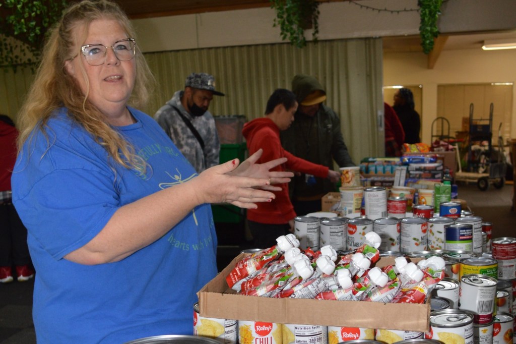 “Há uma grande sensação de calor e conexão ali”, disse Blaser. “Talvez eu consiga uma mistura de salada, algumas batatas… ovos… produtos para o cabelo se precisar deles – mas o que mais valorizo ​​são os voluntários… que aprenderam meu nome e me acolheram.”