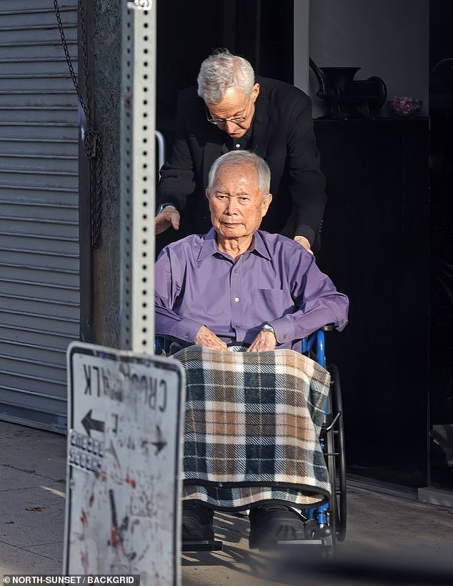 Takei insistiu que está ‘aproveitando a vida maravilhosamente’ e aprendeu ‘se você cuidar de si mesmo, a Mãe Natureza será boa para você’, dizendo: ‘Gosto do meu tempo livre, dos meus cochilos à tarde e de um jantar tranquilo’ (foto em 21 de janeiro)