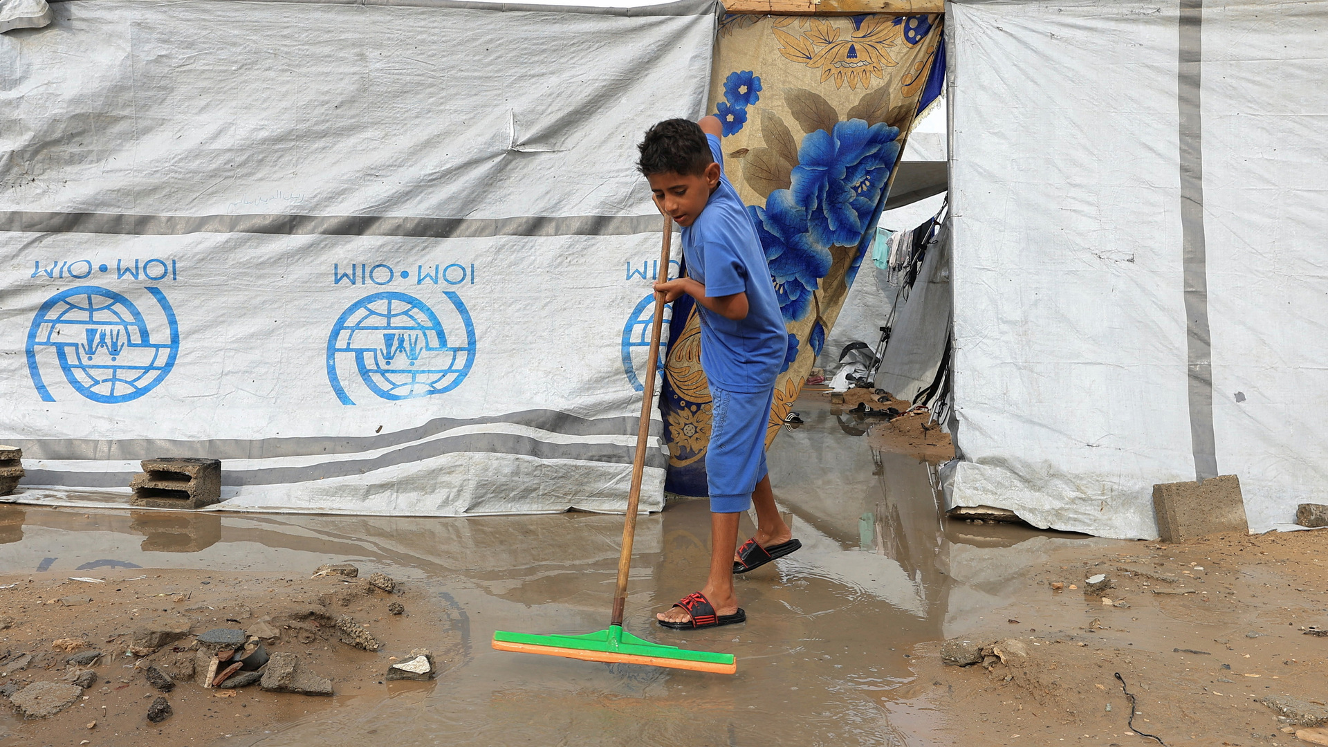 As casas improvisadas dos palestinianos deslocados em Gaza foram inundadas por fortes chuvas, enquanto milhões de pessoas se preparam para o Inverno no enclave sem abrigo ou ajuda adequada.