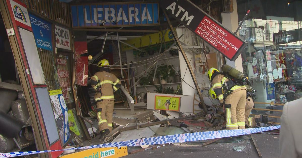 A vitrine de uma agência de notícias foi destruída em Melbourne esta manhã em um aparente ataque de aríete.