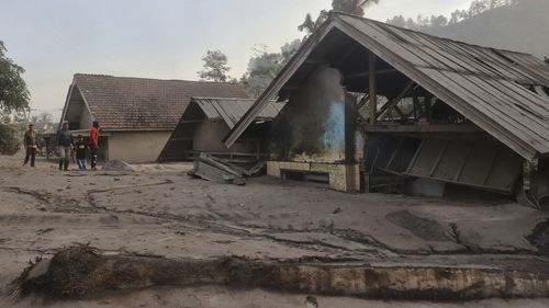 As pessoas foram aconselhadas a se manterem afastadas de uma área ao longo do rio Besuk Kobokan, que é o caminho do fluxo de lava enquanto o gás abrasador descia pelas encostas de Semeru.