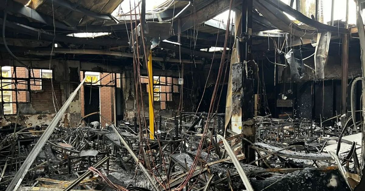 A sinagoga Adass Israel, no sudeste de Melbourne, foi destruída após um bombardeio incendiário. (Nove)